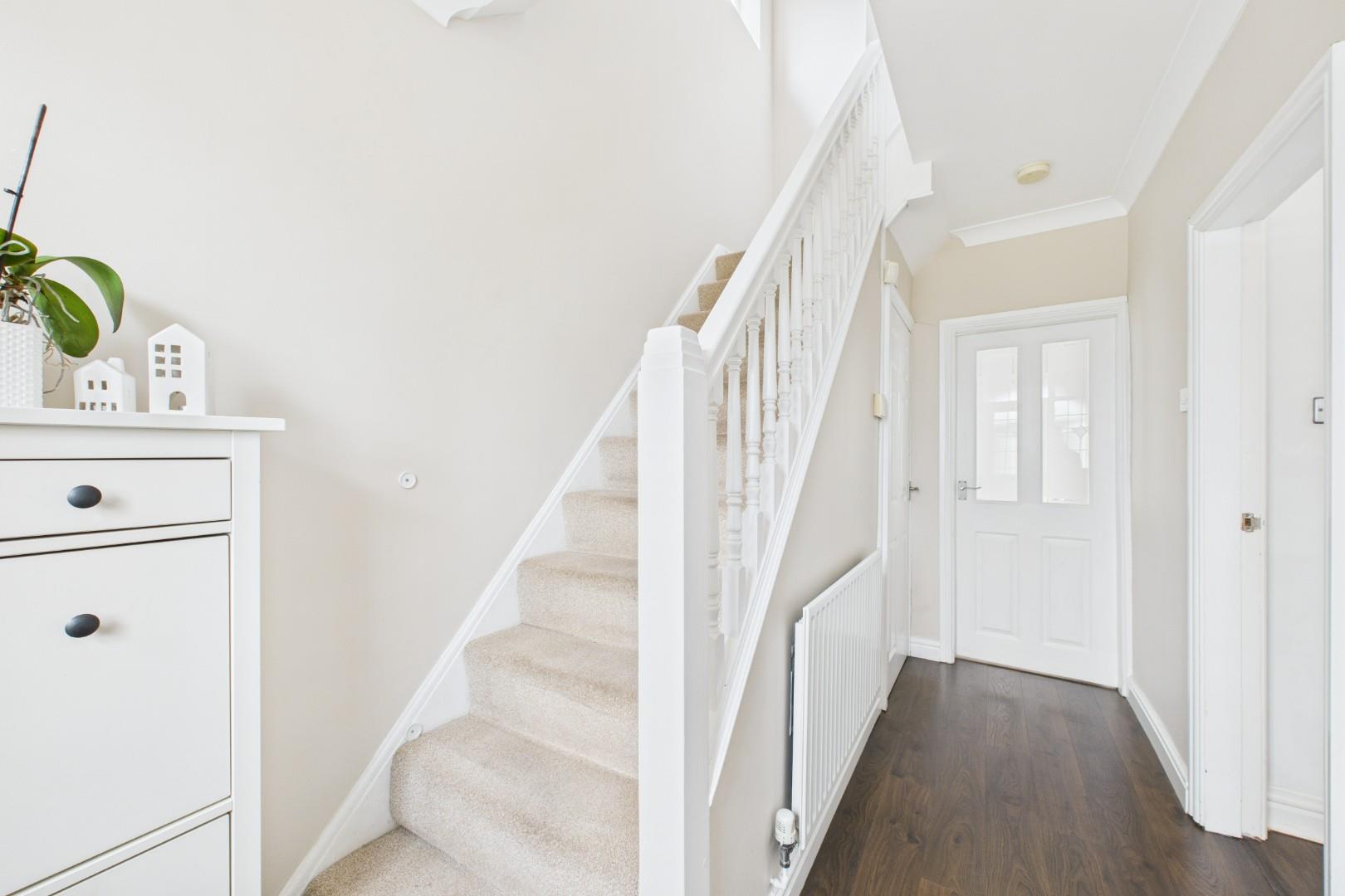 With a door leading from the entrance porch, stairs ascending to the first floor, under-stairs storage cupboard, doors to various rooms and a central heating radiator