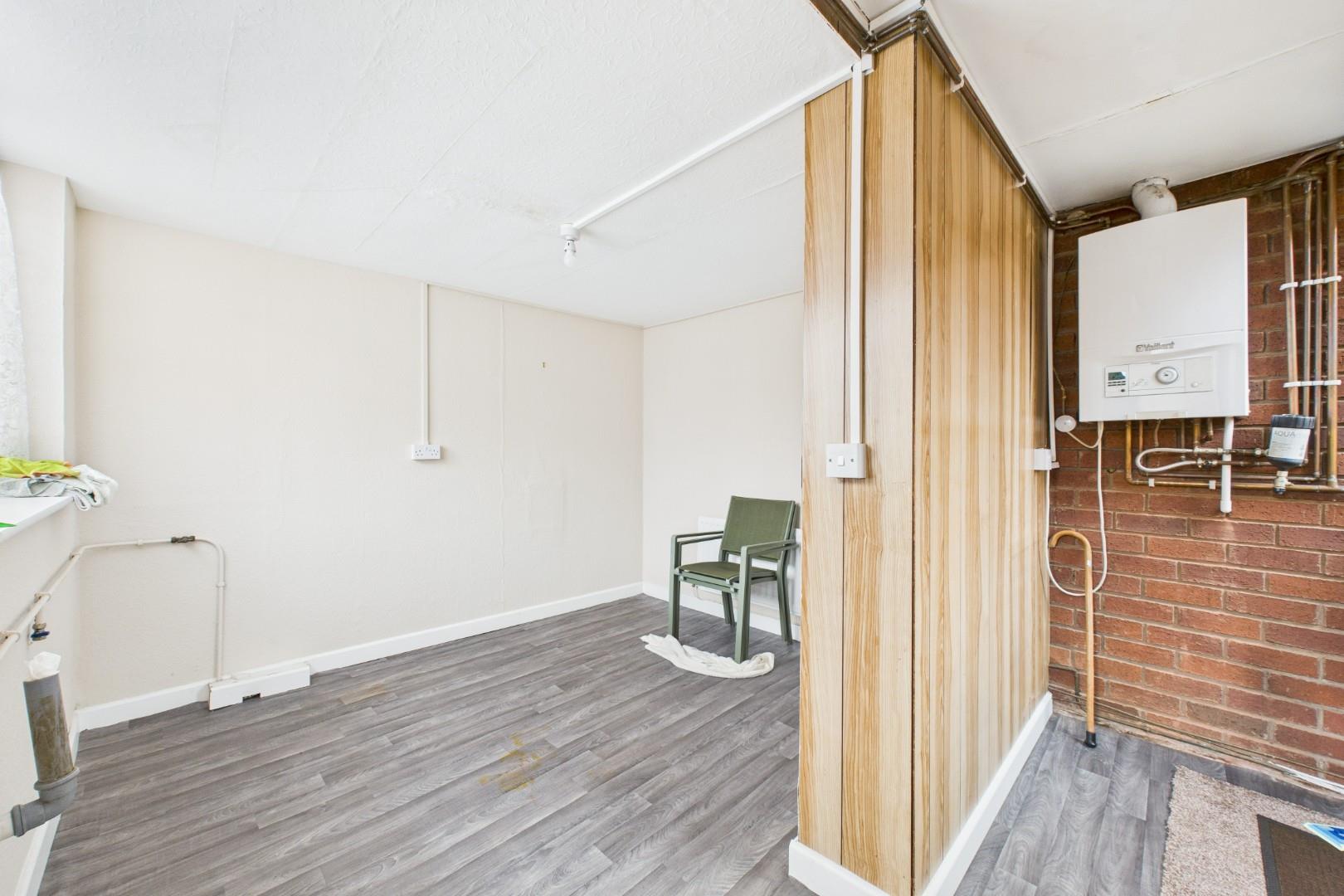 With a door leading from the kitchen, laundry machinery outlet points, a double glazed window to the side, a double glazed UPVC door to the front, a door to the rear garden and a central heating radiator