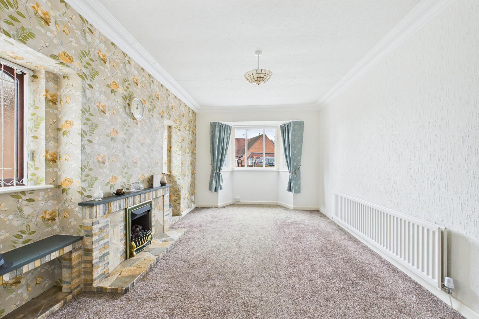 With a door leading from the entrance hall, decorative fireplace with mantel, hearth and gas burner, a double glazed bay window to the front and a central heating radiator