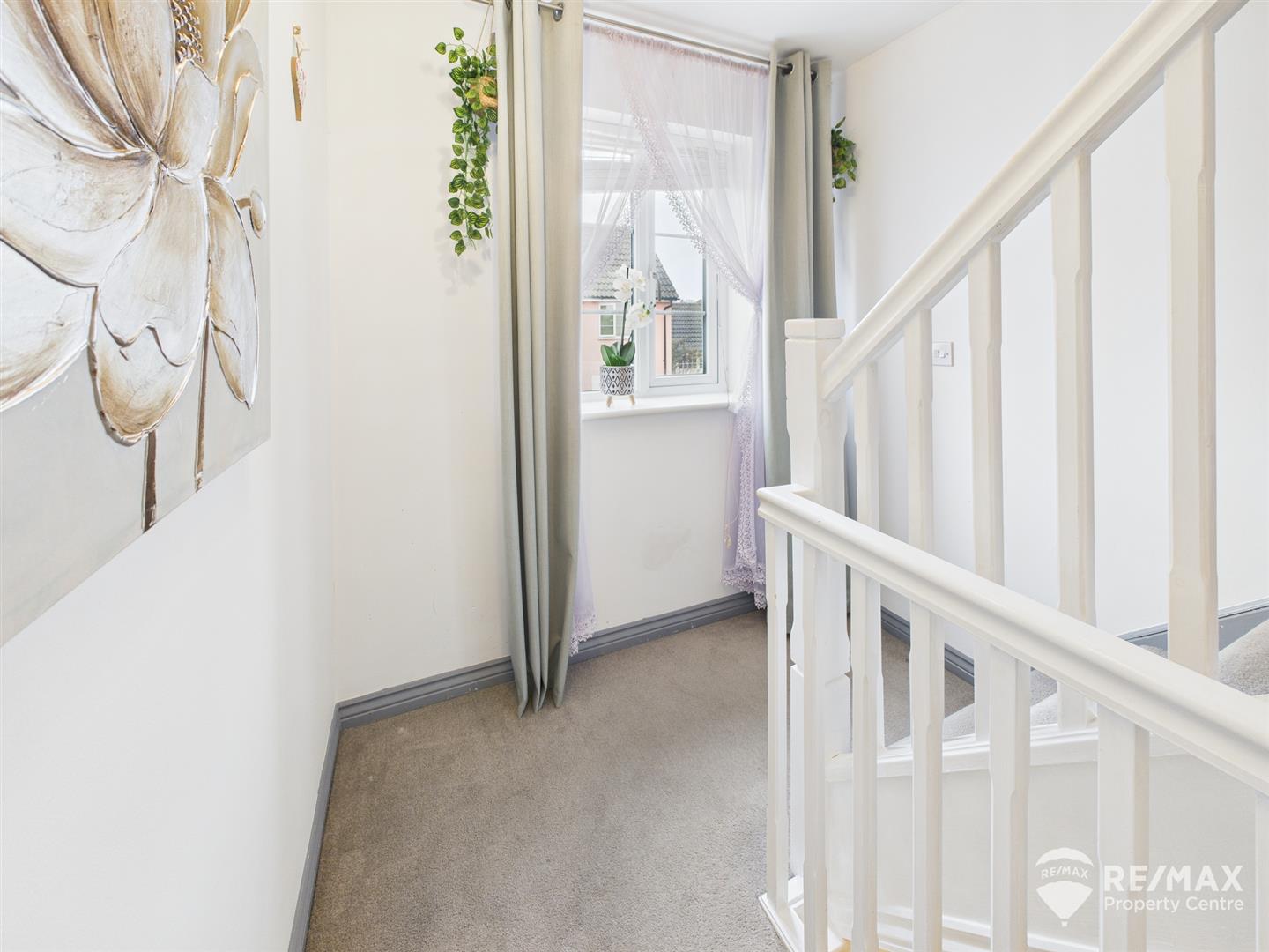 Doors to family bathroom and bedrooms 2 & 4, window to front aspect, stairs up to second floor