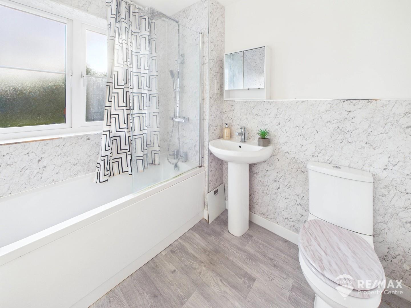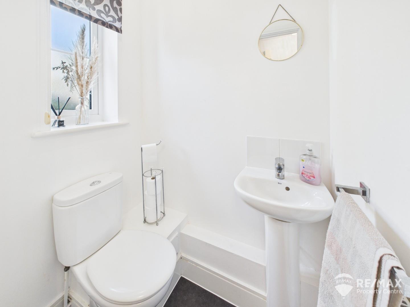 UPVC double glazed opaque window to the front, pedestal wash basin, low-level WC, radiator