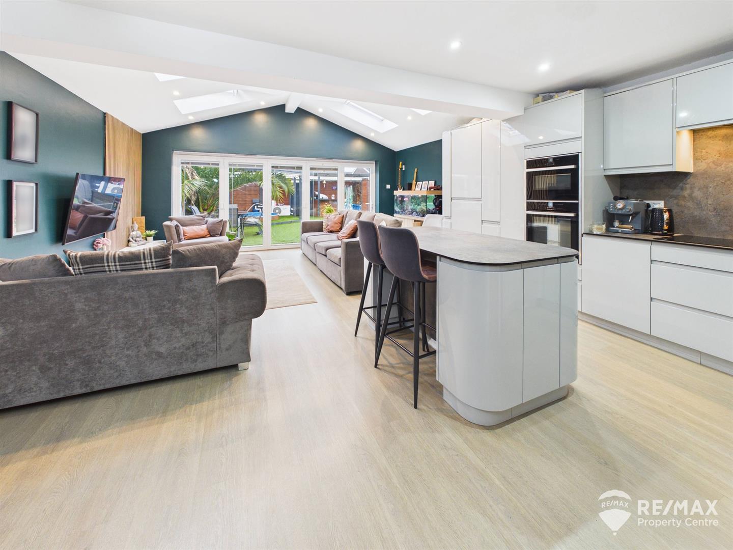 Lounge area: - With bi-folding doors leading out to rear garden, feature wall panelling, 4 x Velux roof windows allowing natural light to flow through