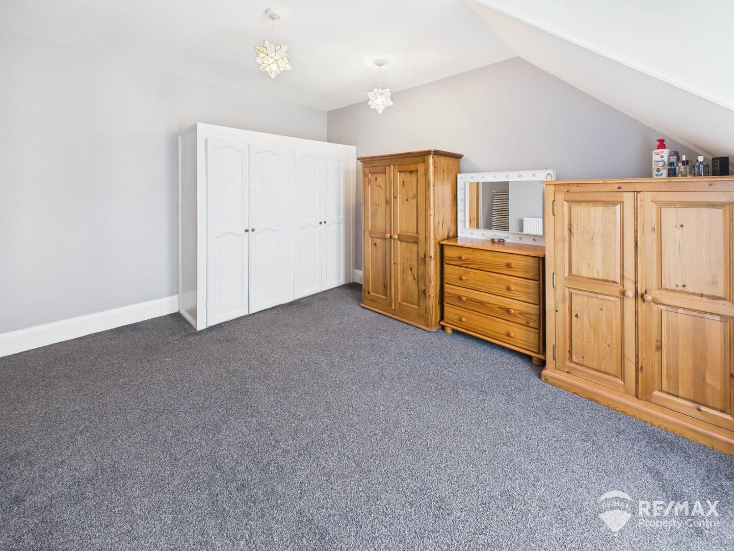 With a small Velux window to the front, storage cupboard, and access to a boarded loft area providing additional storage space.