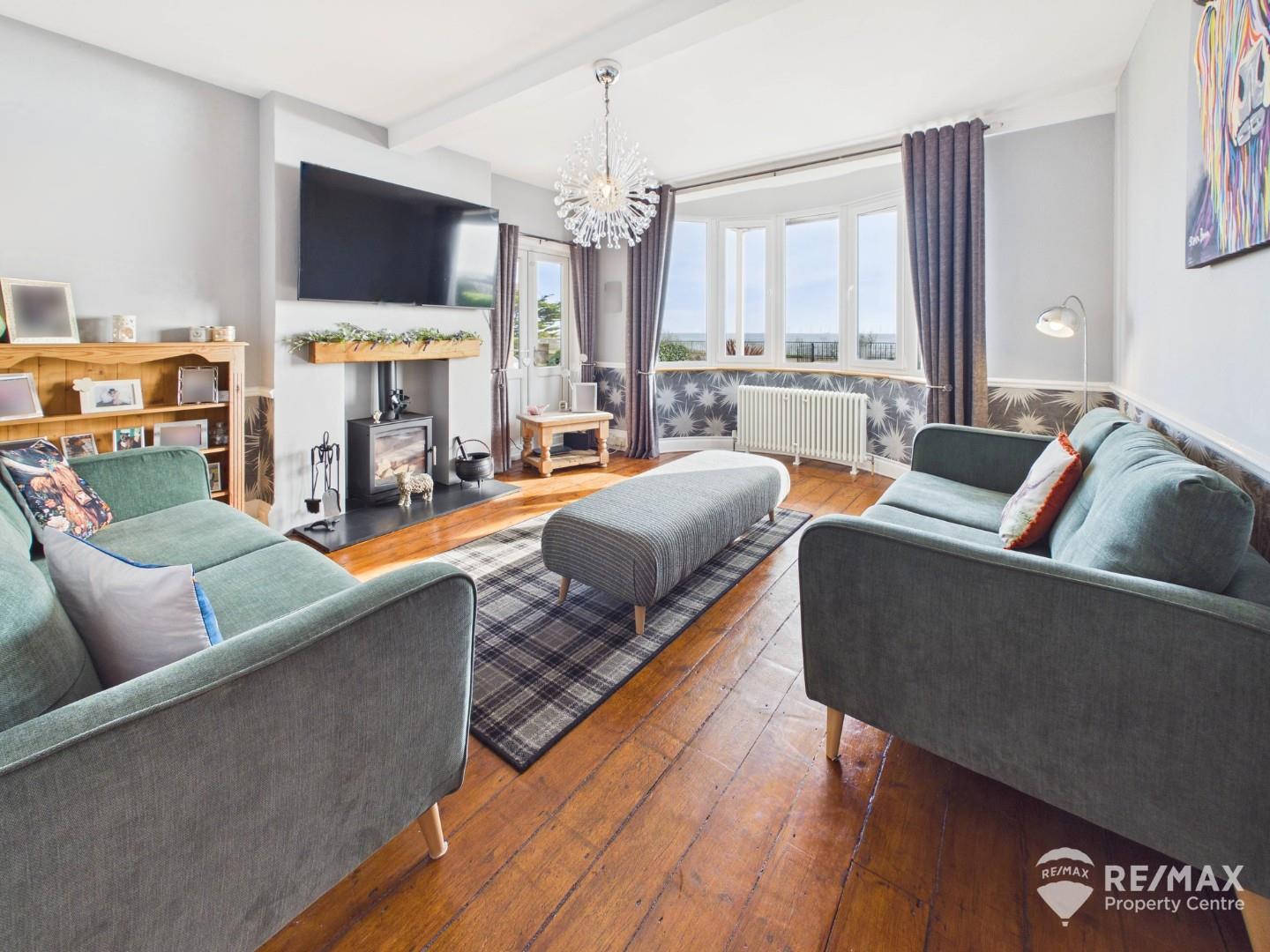 Arranged over multiple levels, the property features four double bedrooms, two bathrooms, and three reception rooms including an impressive 38 ft kitchen/diner with additional sun room, a bay-fronted lounge with log burner, and a separate snug/playroom. Two private balconies enjoy direct sea views, while a loft room/dressing room adds further flexibility on the top floor. The basement level offers versatile accommodation, perfect for entertaining, home working, or additional storage. Externally, there is a gated driveway with off-road parking for multiple vehicles, garage and landscaped front and rear gardens, completing this exceptional coastal residence.