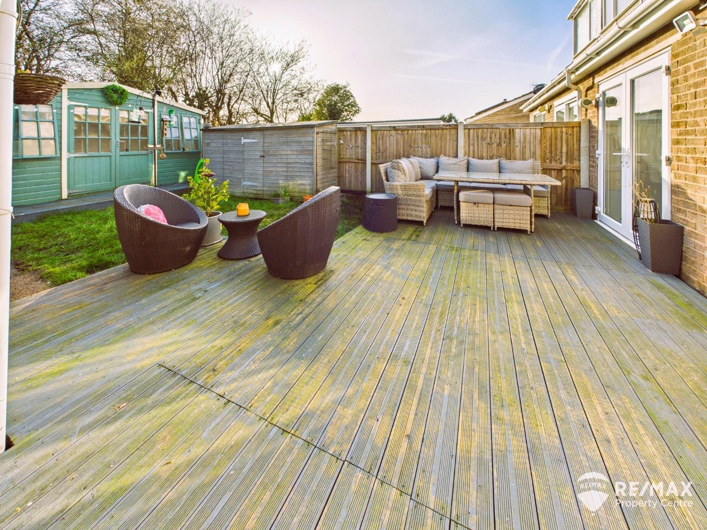 Outside, the property provides generous driveway parking and an enclosed rear garden with decking and a substantial summerhouse with power and broadband — perfect for home working, hobbies or additional family space.
