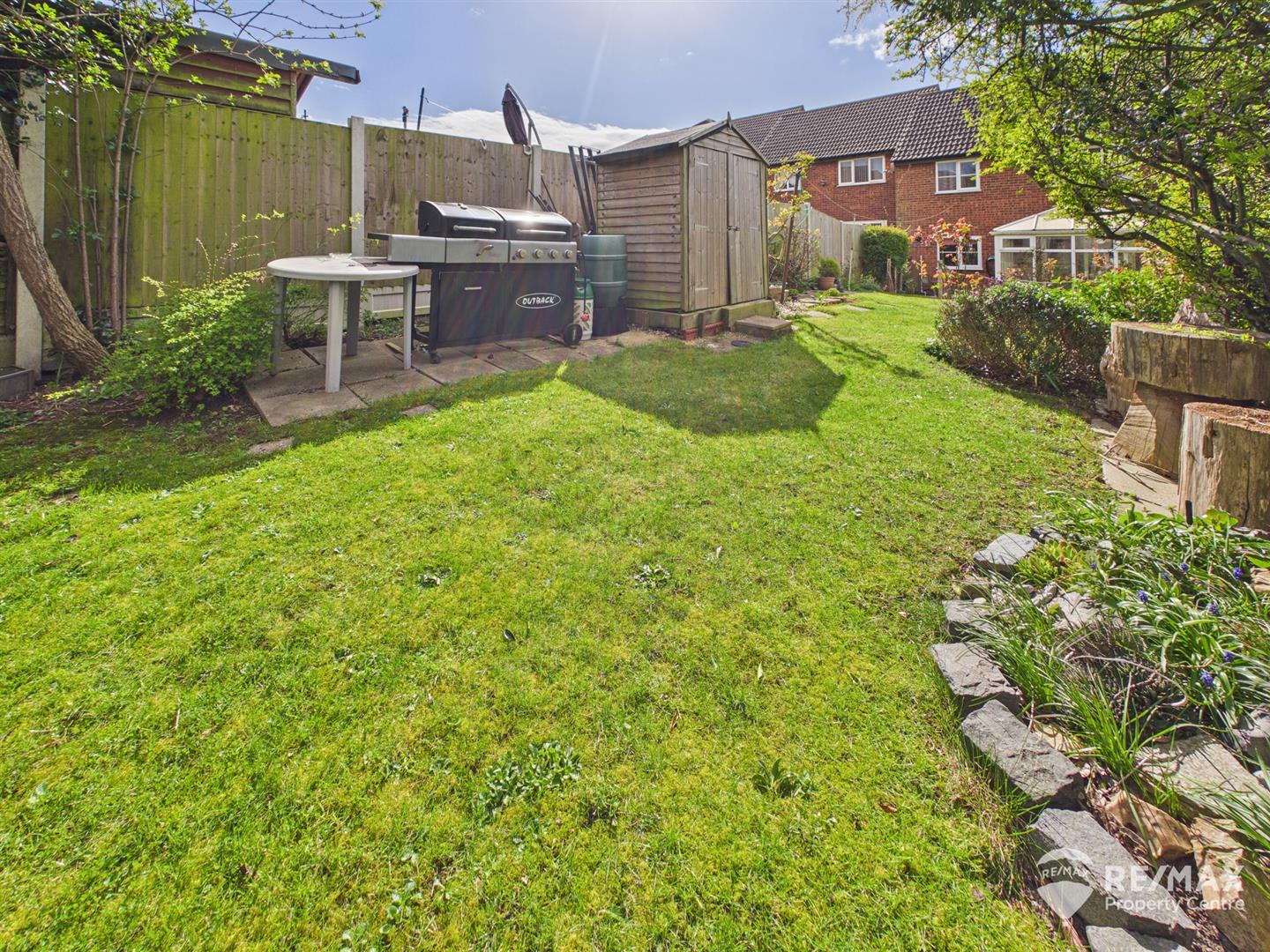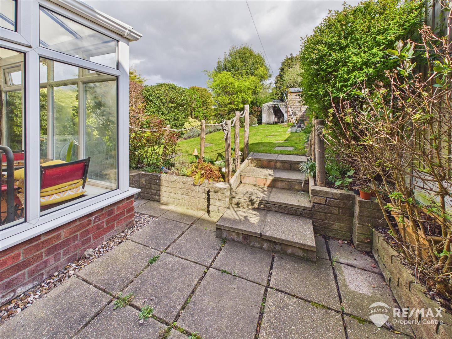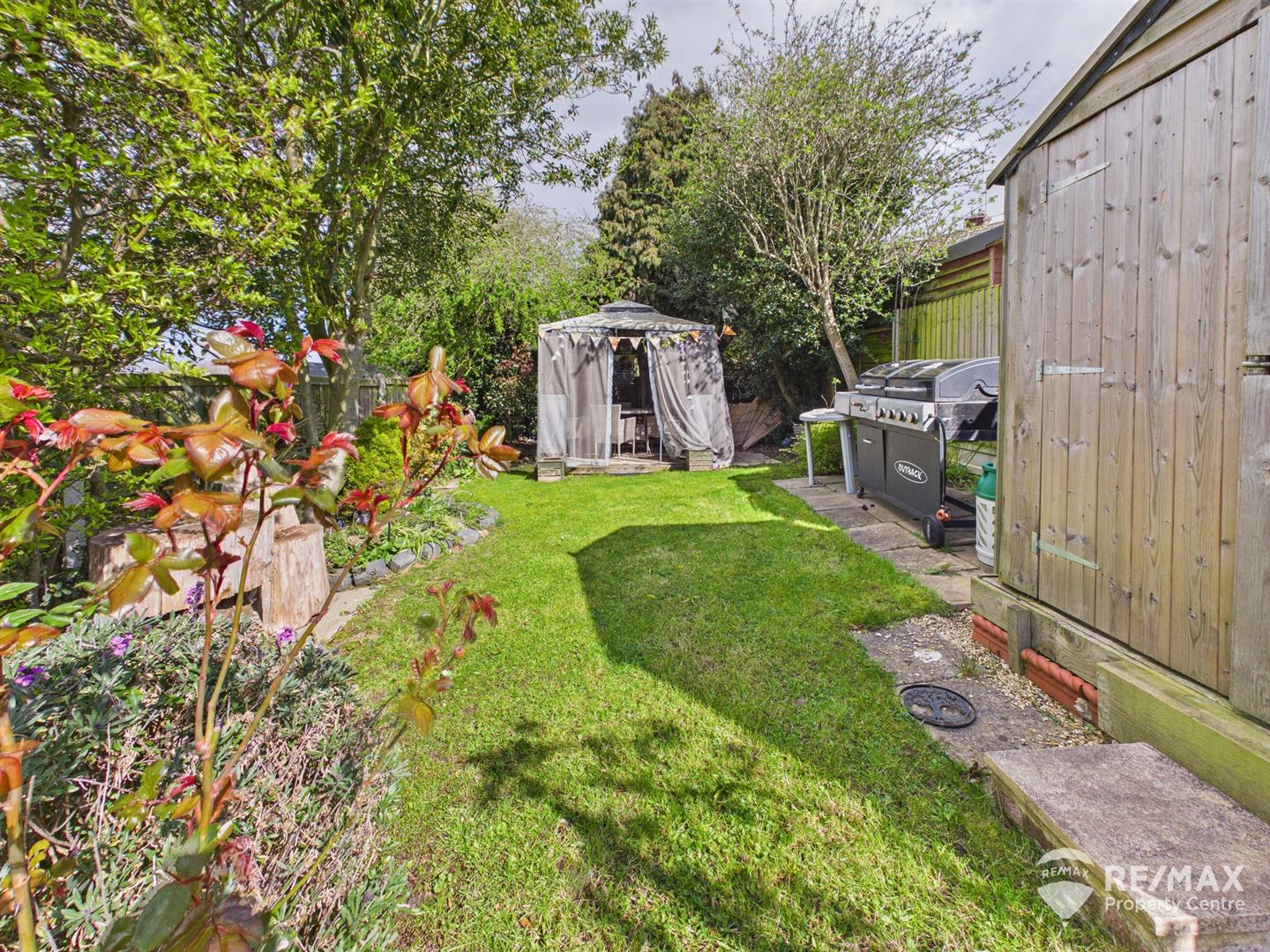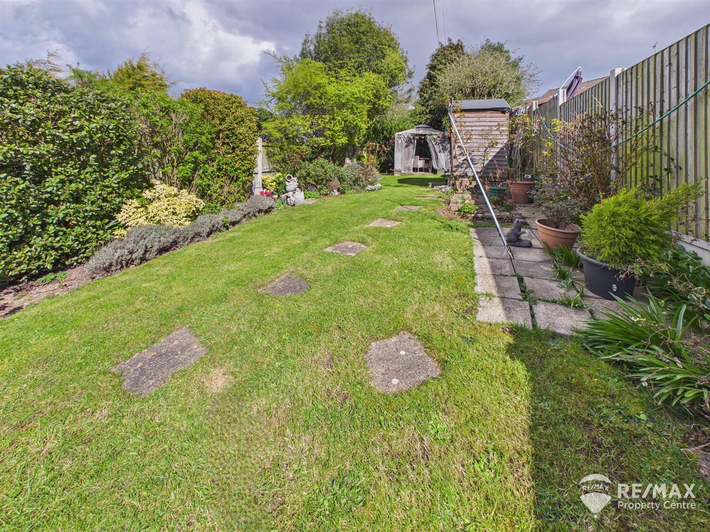 The pleasant rear garden is mainly laid to lawn, fully enclosed and not overlooked, with established trees and shrubs, planter beds, paved patio area and a further paved area to the rear, wooden storage shed