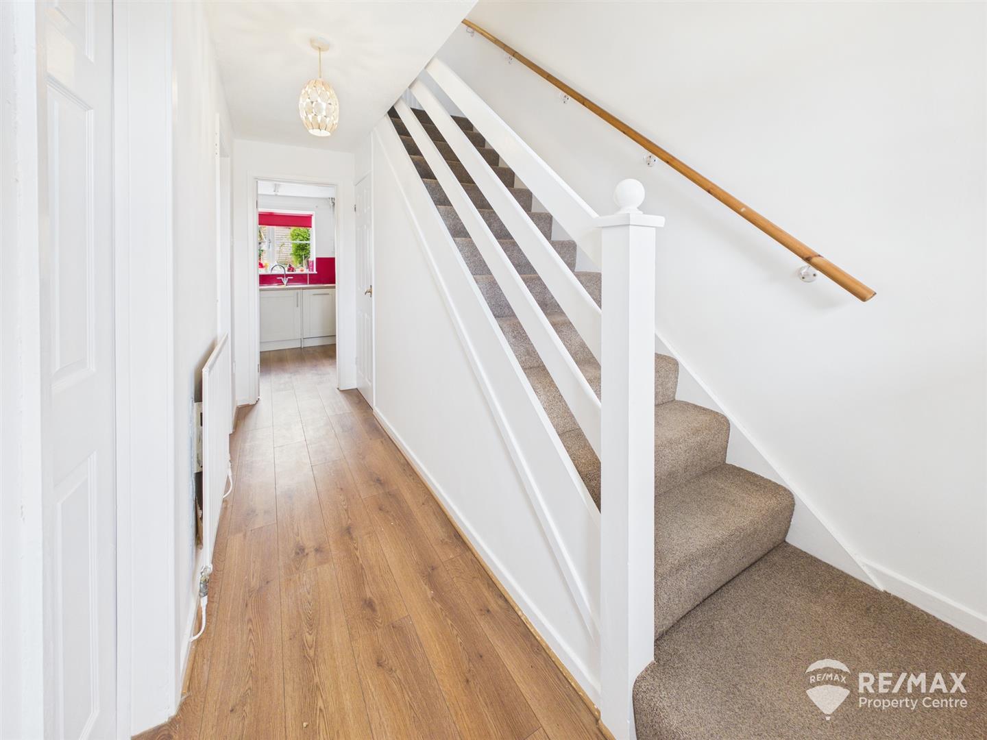 Under stairs storage cupboard, stairs to first floor, window to front aspect and doors leading to lounge, kitchen and GF WC